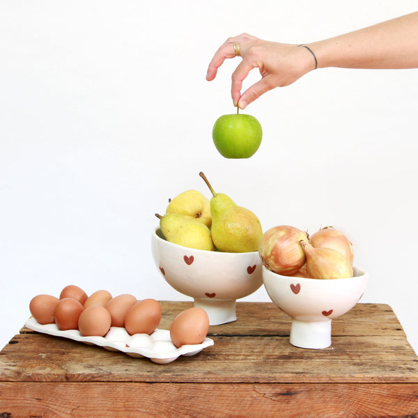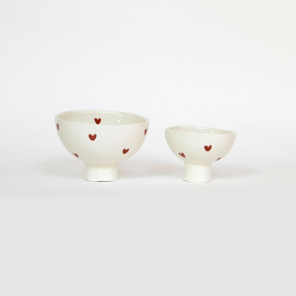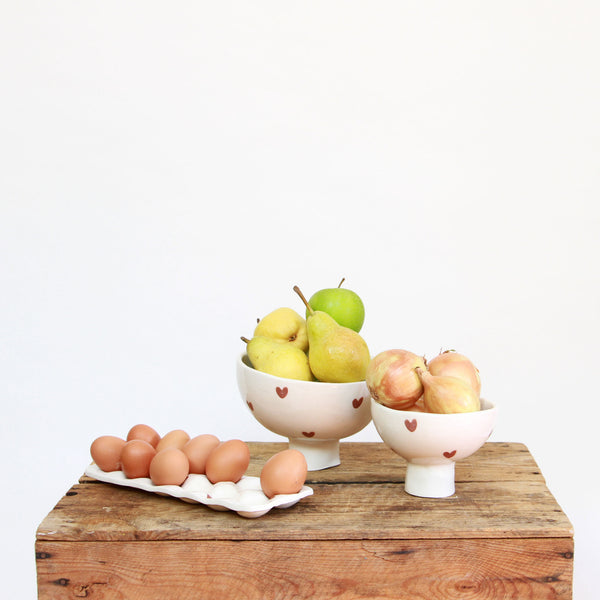 Duos de bols sur pieds en faïence.