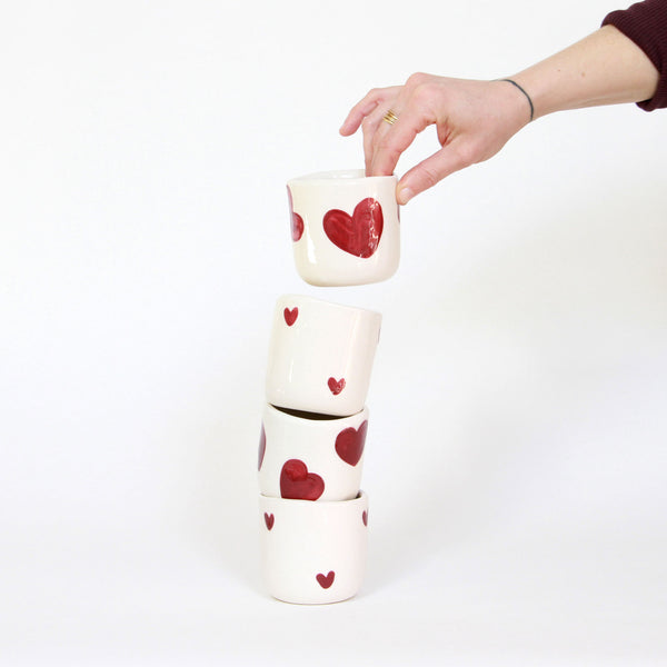 Chaque tasse est unique, faite à la main, les cœurs aussi. Patience et minutie sont de rigueur pour ces jolies !